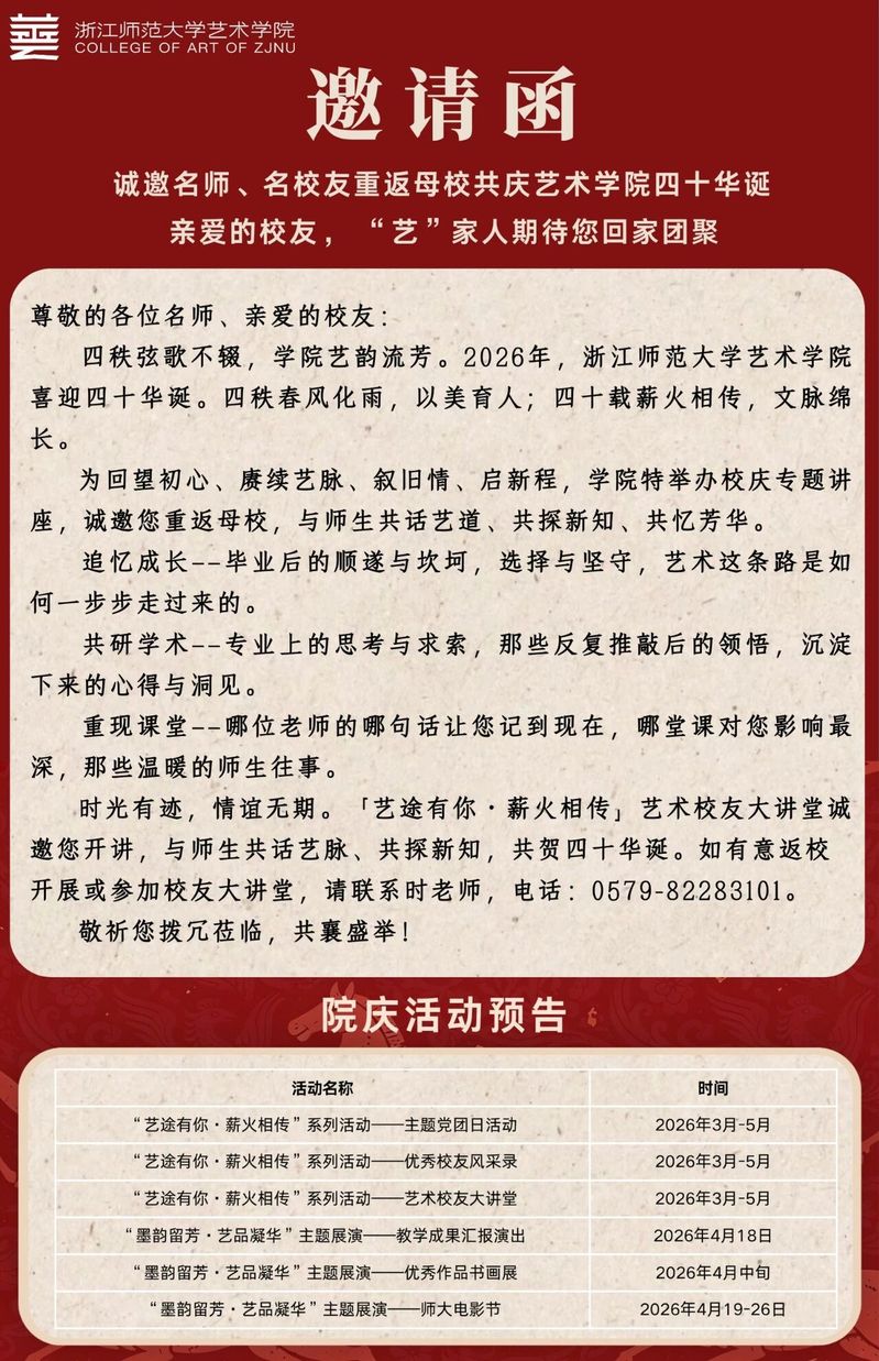亲爱的校友,“艺”家人期待您回家团聚!